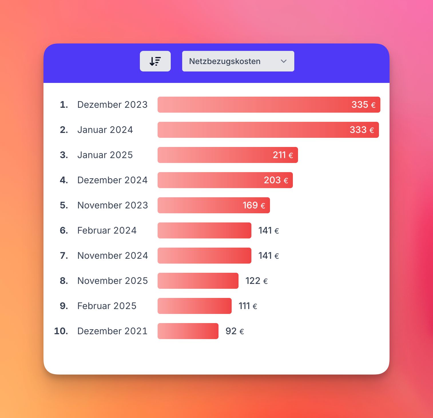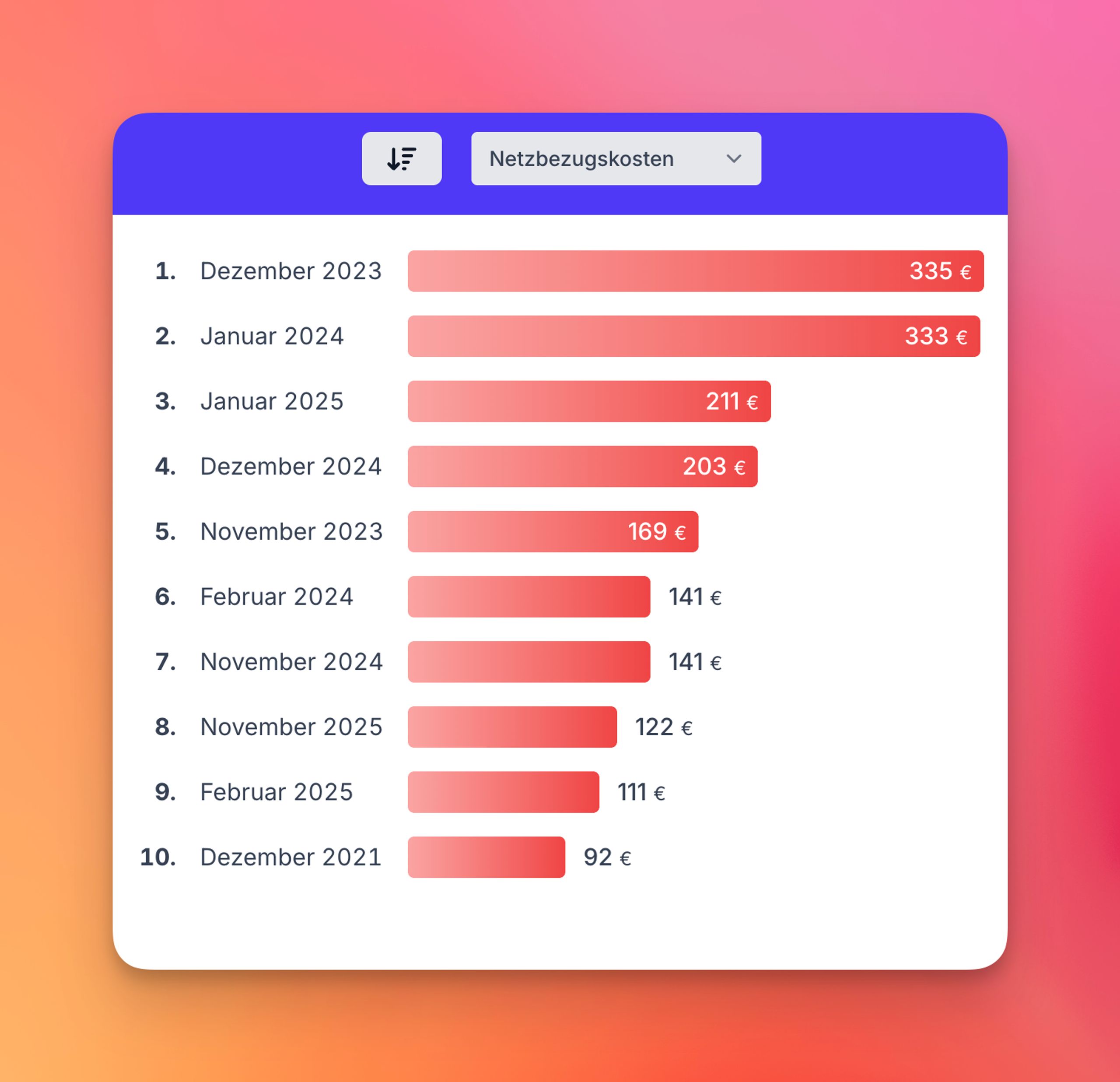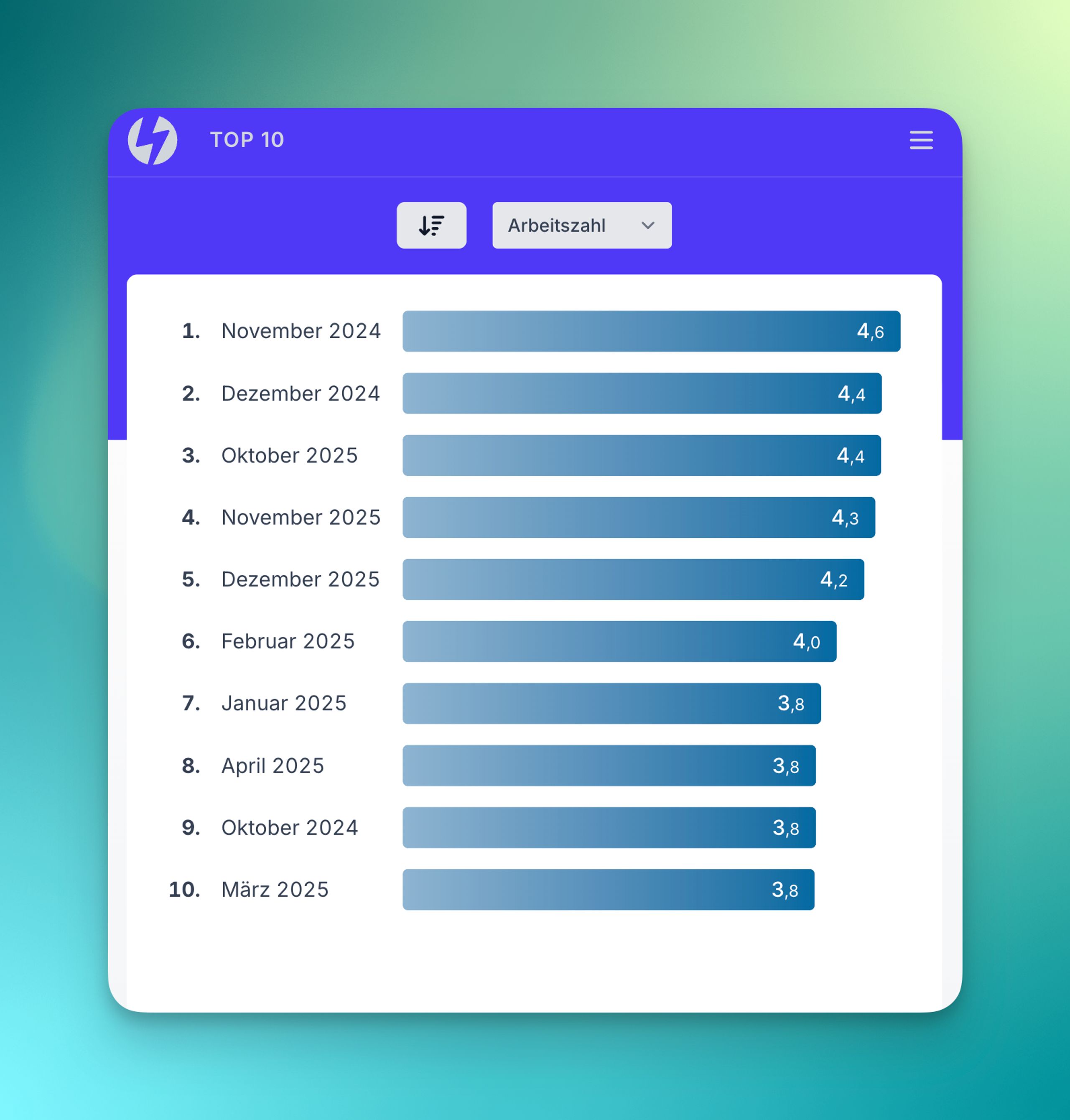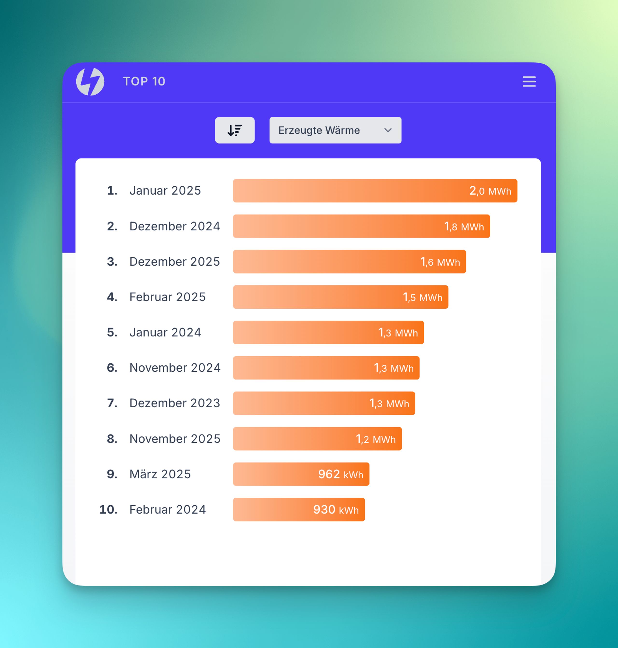 Die Arbeitszahl (COP) wird automatisch berechnet – für jeden Zeitraum, den du wählst. Und ja, natürlich gibt’s dafür auch eine Top-10.