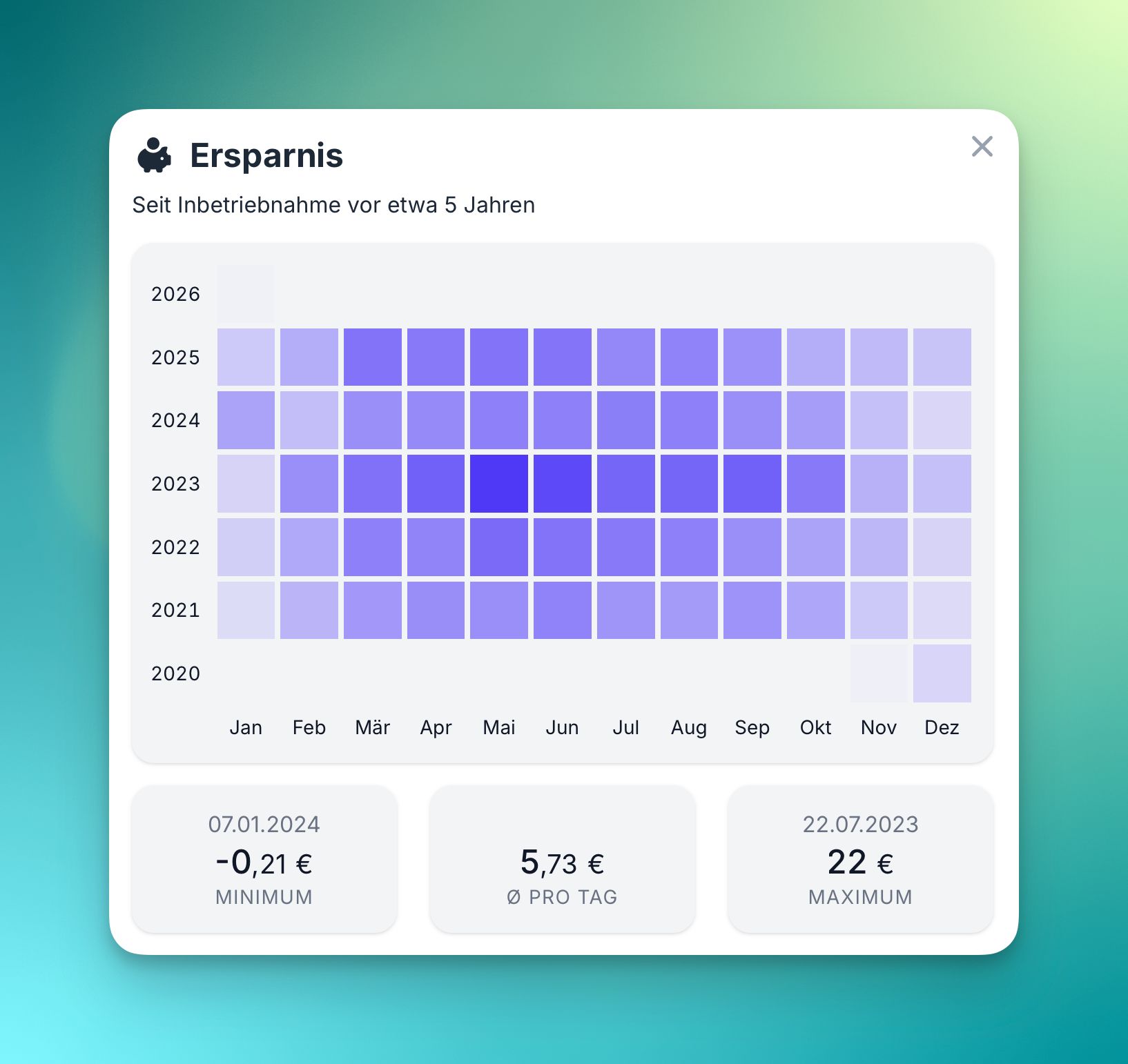Kosten, Ersparnis, Einspeisevergütung – bisher nur als Summe sichtbar, jetzt auch als Verlauf über die Zeit. Wer wissen will, wo das Geld hingeht (oder herkommt), wird sich über die neuen Finanzdiagramme freuen: