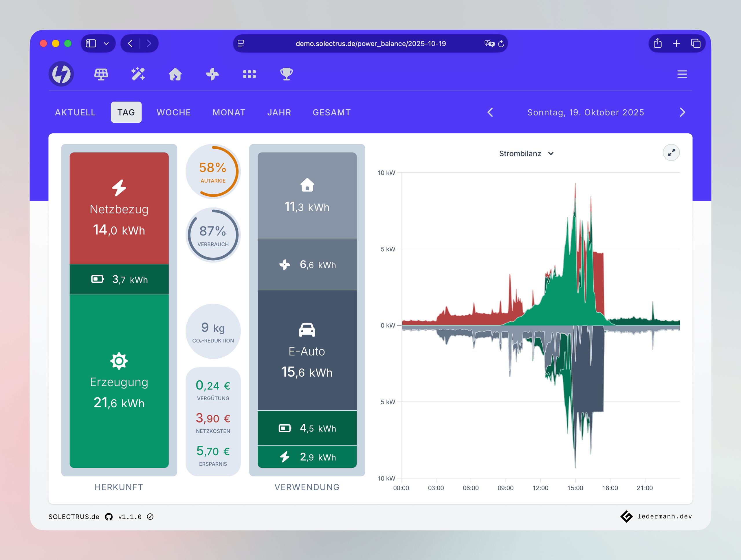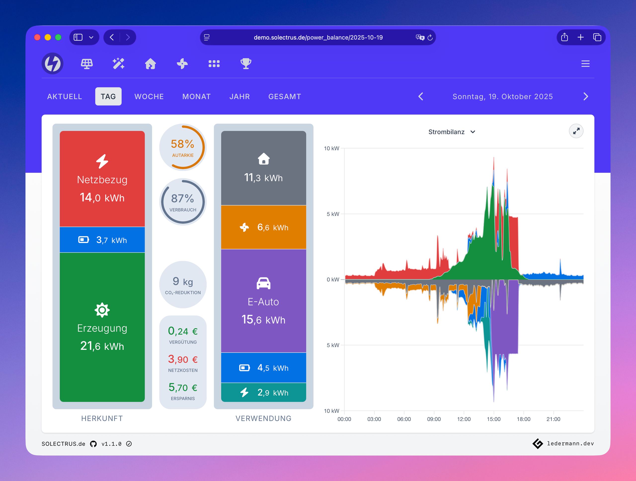 Genau zwei Monate nach Version 1.0 erscheint das nächste größere Update. Im Mittelpunkt steht ein neues Diagramm, das die Strombilanz im Zeitverlauf sichtbar macht. Dazu kommen weitere Verbesserungen bei Darstellung und Bedienung.