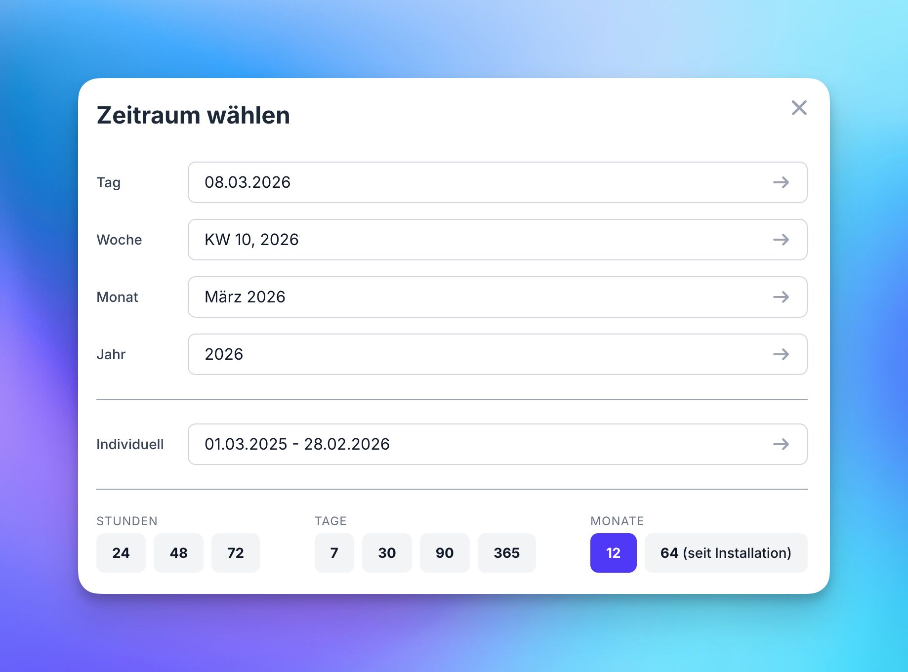 Relative Zeiträume wie „Letzte 30 Tage“ sind jetzt direkt auswählbar. Das spart Klicks und macht die Bedienung intuitiver.